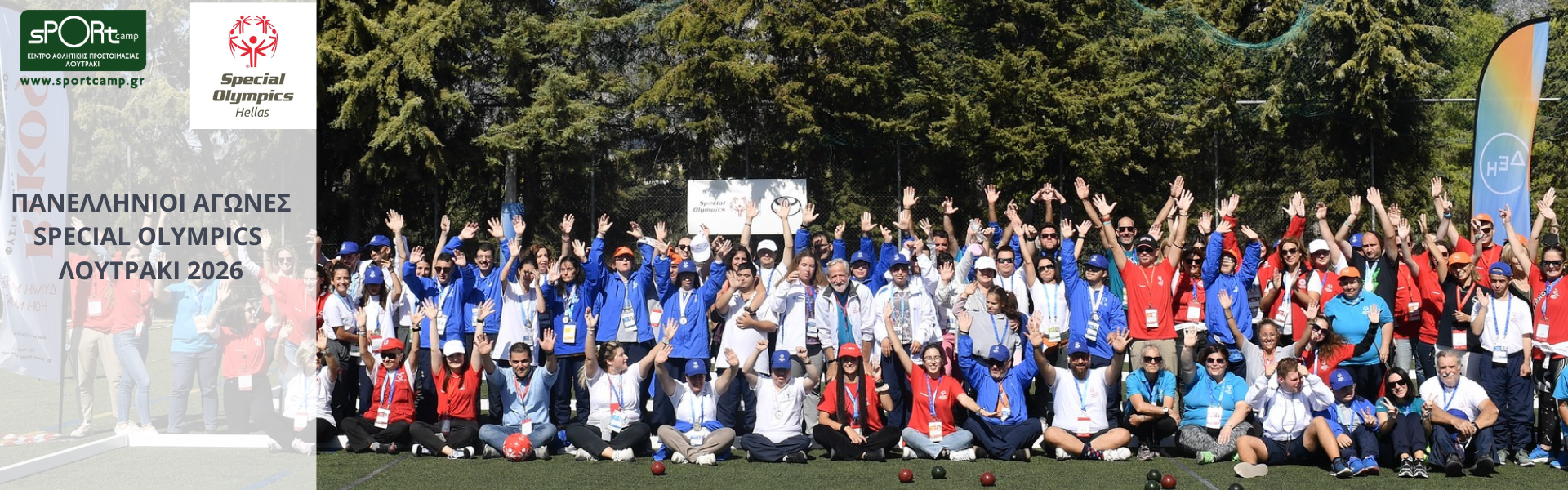 Το SPORTCAMP, συνεχίζοντας δυναμικά την πορεία του στην υλοποίηση σημαντικών διοργανώσεων, διοργανώνει για ακόμη μία χρονιά το σπουδαίο γεγονός των Πανελλήνιων Αγώνων Special Olympics, που αναμένεται να συγκινήσει και να εμπνεύσει! Οι Πανελλήνιοι Αγώνες Special Olympics Λουτράκι 2026 θα πραγματοποιηθούν από τις 8 έως τις 13 Μαΐου, προβάλλοντας τον αθλητισμό στην πιο ουσιαστική και ανθρώπινη μορφή του, εκείνη που καλλιεργεί αξίες, ενισχύει την πρόοδο και αναδεικνύει ιδανικά που αξίζει να αγκαλιάζουμε όλοι.