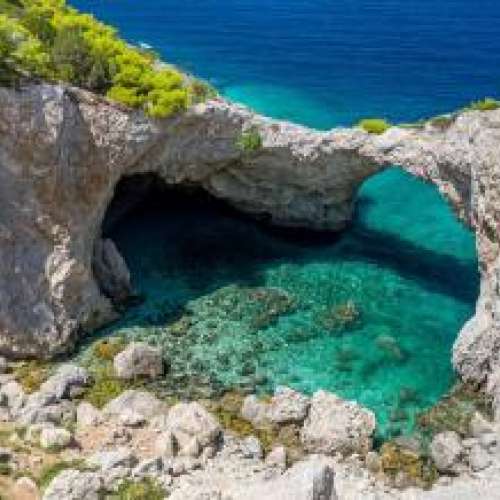 It is a rocky formation, a natural arch above the turquoise waters of the sea. It is about an hour from Loutraki and is just opposite the Alcyonides Islands. The Seal Cave is one of the purest and untouched parts of Loutraki region as it has remained unknown for years, because of it's difficulty to access. Access to the cave is by boat or through a rough, pine-covered path.