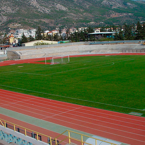 The Korinthos Municipal Stadium (soccer field with grass carpet and 400m track of 8 lanes with all needed equipment for jumping, throwing and track events)